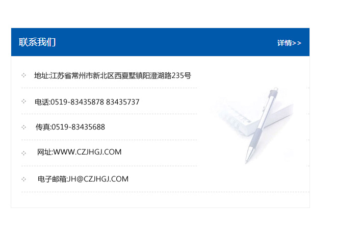 地址:常州市新北區友邦商務大廈1幢16、17層  電話:0519-85101652  傳真:0519-85112595  郵編:213022  網址:www.cz-jiayue_cn.ahhczg.com  郵箱:xiajifengaa@163.com